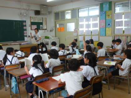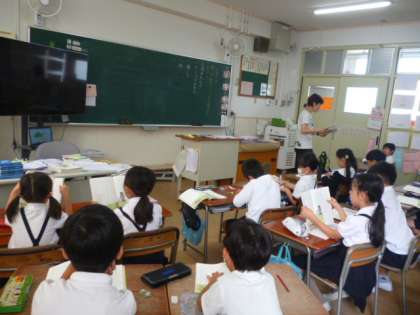 国語科では物語文「ニャーゴ」を読み、場面分けをします。人物や場所、時に着目して、物語が変わる場面を考えました。面白い物語なので、これからの学習が楽しみになった2年生でした♪