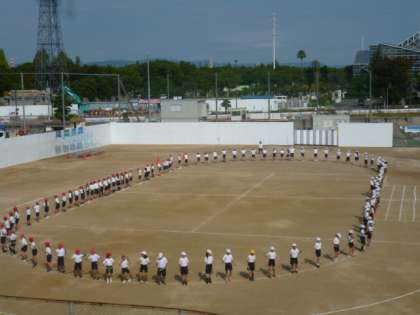 4年生の団体演技の様子を3階から見ました。振りがそろっているだけでなく、隊形移動の三角形がきれいにできていて鳥肌が立ちました。