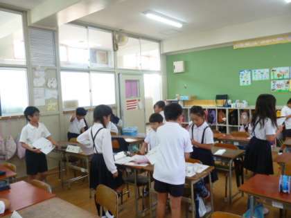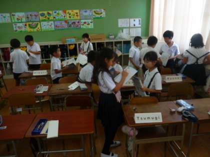火曜日の外国語の時間は、クラスの友だちの好きな食べ物、色、スポーツ、動物などを「What do you like?」を使ってたずねる活動をしました。「色は黒や紫が多い!」「スポーツはスイミングだったよ」など、クラスの仲間の好きなものを知ることができました。