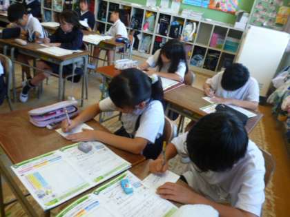 国語科「案内の手紙を書こう」の単元で学習したことを生かして、運動会のご案内を家族や親せきの方宛てに、はがきを書きました。気持ちを込めて、集中して丁寧に書いていました。運動会までにはがきが届くと思います。楽しみにしていてくださいね♪