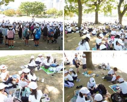 お弁当は扇町公園で食べました。愛情たっぷりのお弁当、もぐもぐ味わって食べました。おやつもあって、おなか一杯!午後からは扇町公園の遊具でたくさん遊んで、楽しい時間を過ごしました。遊んで、食べて、遊んでの最高の遠足になりました♪