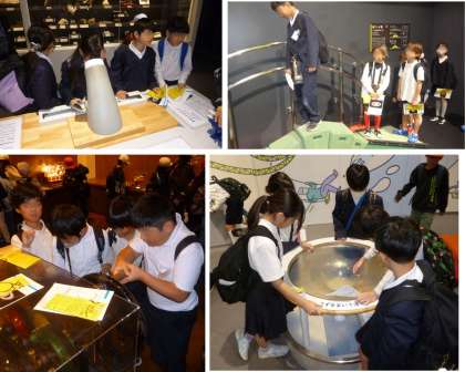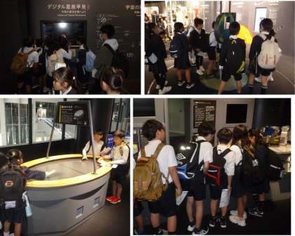 科学館の展示物に興味津々な4年生!楽しんで見学しました。プラネタリウムの様子は残念ながら写真はとれず…。どんな様子だったかはお子さんから聞いてほしいと思います。天体に興味を持ったと思いますので、ぜひ今日のスーパームーンを見てほしいのですが…空は雨雲がかかっているようです( ;∀;)