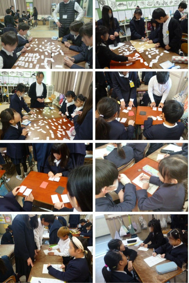 6年生が行っているピア・サポート。今回は2年生と「九九」の学習をしました。一生懸命九九を覚えている2年生は、6年生にチャレンジです!!九九カードを用いたり、ビンゴカードを作ったり、数字カードで九九の対戦したりと、6年生が楽しい九九ゲームを考えてくれました。2年生も「負けないぞ!」とはりきって挑む姿が見られました。このピア・サポートの取組は、4年生を残すのみとなりましたね。6年生、毎回素敵な取り組みを本当にありがとう♪