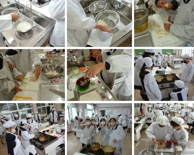 5年 調理実習週間でした!(12/19) 公開日 2025/12/19 更新日 2025/12/19 5年 今週の火曜日から、1クラスずつ「ごはんとみそ汁」の調理実習を行いました。ごはんを鍋で炊いたり、みそ汁を出汁からとったり…と初めて経験する子が多かったのですが、どの学級もとても上手に調理していました。ごはんはつやつやと輝いていて、煮干しからとった出汁は思っていた以上においしかったようです。冬休みに入りますので、ぜひ学習したことをご家庭で実践してほしいと思います。 いいね(0)