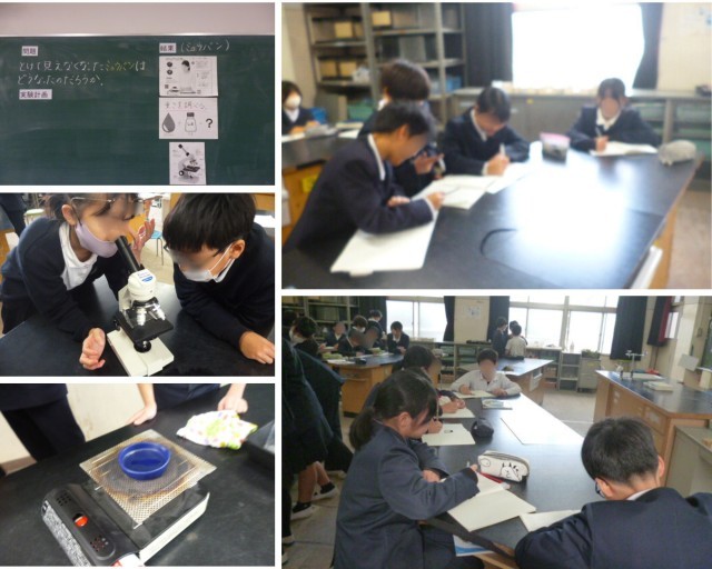 食塩に引き続き、溶けて見えなくなったミョウバンはどうなったのか、実験をして確認をしました。食塩のときに学んだ実験方法を使って、考えを深めていました。