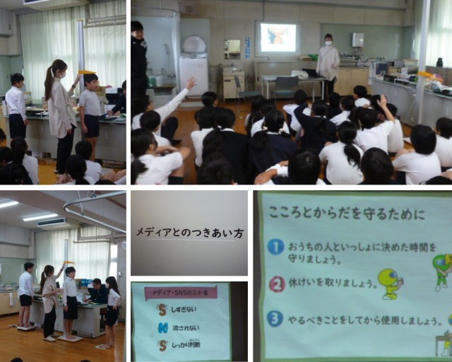 発育測定がありました。保健指導は「メディアとのつき合い方」で、正しい知識をもってSNSを使用しようというお話でした。インターネットが生活の必需品となっている今、情報をいかに見極めていくかが重要です。また、SNSトラブルに巻き込まれない情報モラルを身につけていくことも大切です。心身の健やかな成長のために、ご家庭でも「メディアとのつき合い方」について話し合う機会をもっていただけると嬉しく思います。
