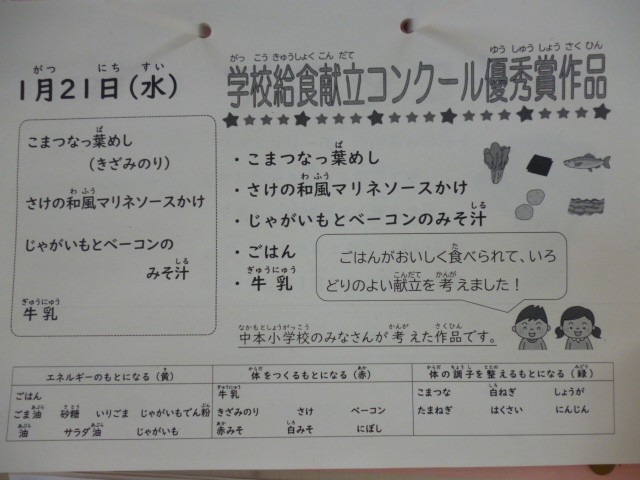 今日は学校給食コンクール優秀賞献立でした♪(1/21)