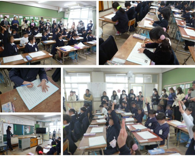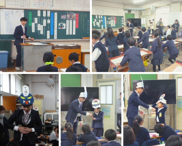国語科では「子どもをまもるどうぶつたち」という説明文の学習をしています。今日はたくさんの先生方に学習の様子を見ていただきました。コチドリが敵から子どもを守るためにどんな知恵を働かせているかを読み取っていきました。動作化したりロールプレイングしたりしながら、コチドリの知恵を体感していきました。学習姿勢がとてもよく、切り替えもバッチリ、意欲的に学ぶ1年生の姿に、先生たちがたくさん褒めてくださいましたよ☆花丸満点、よく頑張りました!