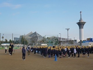 本日、久しぶりに運動場で児童集会を行いました。これまで運動場が工事のため全面使用できなかったのですが、ようやく全面使用でき、子どもたちは集会委員の人たちが企画した「ホィッスルゲーム」を楽しんでいました。