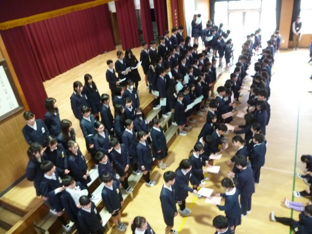 2.27(金) 卒業を祝う会 公開日 2026/02/27 更新日 2026/02/27 お知らせ 6年生の卒業も近づき、今日は卒業を祝う会が開かれました。元気な振り付けや歌声、きれいなリコーダー、それぞれの学年がそれぞれの思いを込めて、6年生の卒業をお祝いしました。6年生からは、6年間で歌った歌のメドレーでお返し。校長先生からもお話があったように、6年生との今日までの関りがそのまま表れた、とても素敵な会でした。 +4 いいね(1)