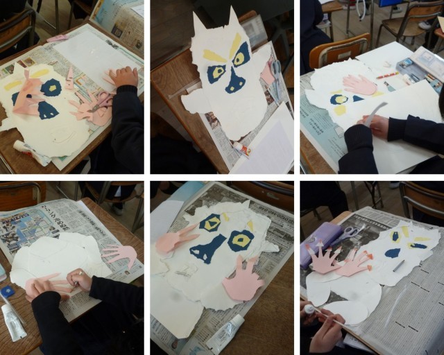 2年 イライラ鬼をやっつけよう!(3/6) 公開日 2026/03/06 更新日 2026/03/06 2年 図画工作科では、紙版画を制作中です。心の中にいる「イライラ鬼」を版に表しているところです。画用紙は手でちぎって貼っているので味わいがあります。印刷するとどんな感じに仕上がるのか、今から楽しみです!イライラ鬼をやっつけて、気持ちよく生活したいですね。 いいね(0)