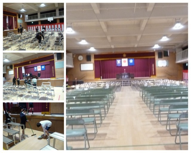 5時間目、5年生が全校を代表して卒業式の準備をしました。みな、熱心に掃除をしたり、準備をしたり、本当によく働きました。おかげで学校がとても美しくなりました。講堂もばっちり整いました。明日の卒業式を気持ちよく迎えられます。5年生のみなさん、ありがとうございました。