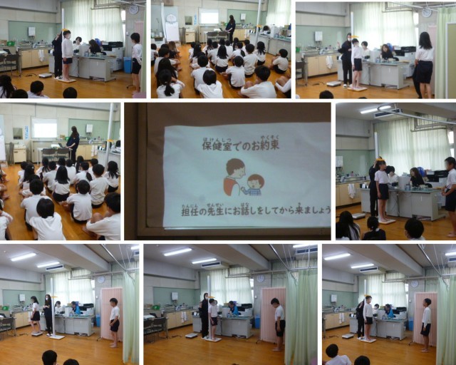 先週金曜日から発育測定と保健指導が始まりました。今日は5年生が発育測定。保健室の先生お二人が新しく来られた先生なので、いささか緊張しているように見えました。5年生は心身ともに成長期に入ります。「早め・早起き・朝ごはん」で規則正しい生活をして、自分の成長を楽しみにしてほしいと思います♪
