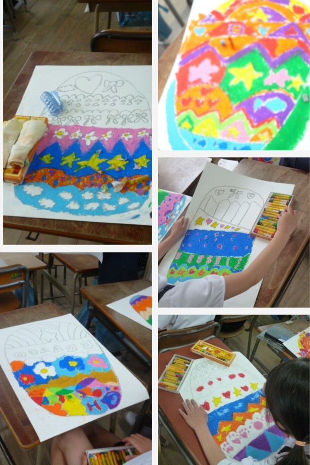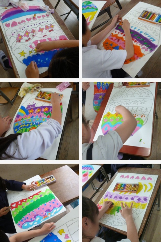 2年 カラフルなたまご(4/24) 公開日 2026/04/24 更新日 2026/04/24 2年 図画工作科では「たまご」を描いています。大きくていろいろな模様があり、とてもカラフルなたまご。世界で一つしかないふしぎなたまごをとても丁寧に描いています。このたまごがどんな作品になっていくのか・・・楽しみですね♪ いいね(1)