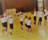 学年で講堂に集まり、リズムダンス発表会を行いました。各クラスごと4グループに分か...