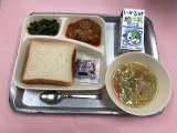 今日の給食は、「マカロニグラタン・レタスのスープ・りんご(カット缶)・黒糖パン・...