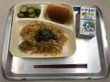 今日の献立は、「焼きそば・きゅうりのしょうがづけ・黒糖パン・牛乳」です。給食は、...