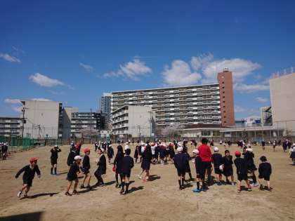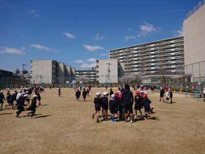 子どもたちは広くなったグランドで元気に遊んでいます。