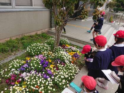 1組は理科 虫めがねを使って、春の植物の観察です。