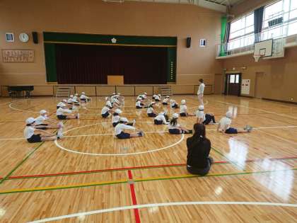2組は体育 柔軟体操をしました。
