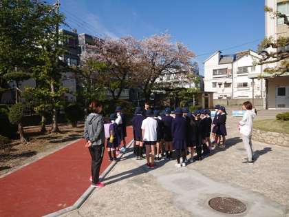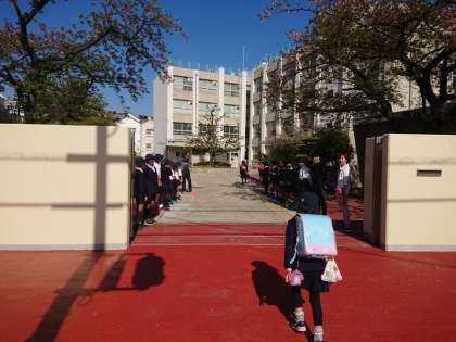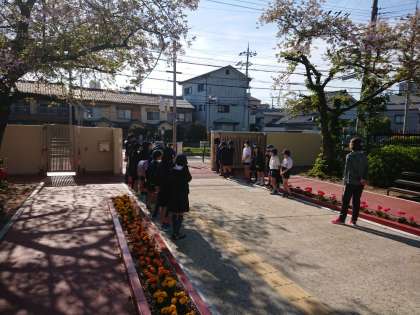 今日は正門で20人ほどの児童とたくさんの先生方が、登校してくるこどもたちに元気よくあいさつをしていました。