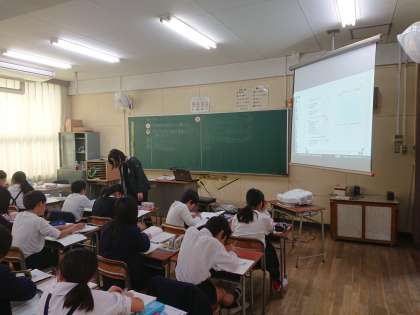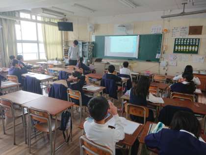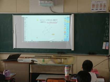 1学級を2つの教室に分けて、少人数で学習しています。