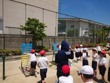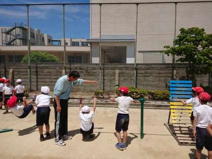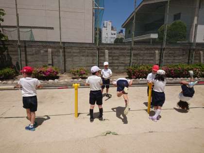 鉄棒強化月間にあわせて、鉄棒(逆上がり)の練習をしています。
