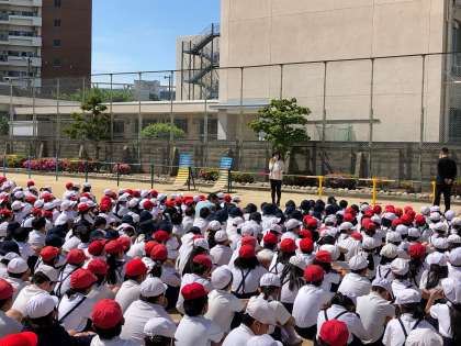 子どもたちは「お(さない)は(しらない)し(ゃべらない)も(どらない)」を守りながら、避難をしました。