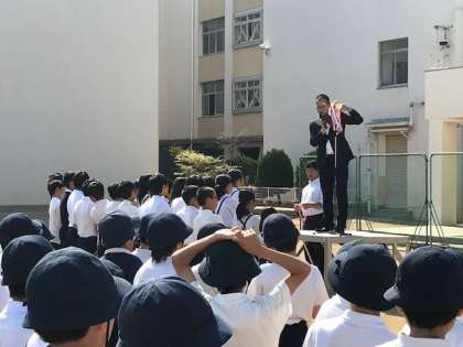 今日の全校朝会では、校長先生から「いじめについて考える日」のお話がありました。