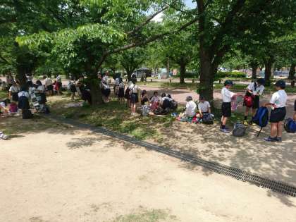 今日は、天気も良く、金曜日なので他の学校や幼稚園、保育所の子どもたちもたくさん来ています。