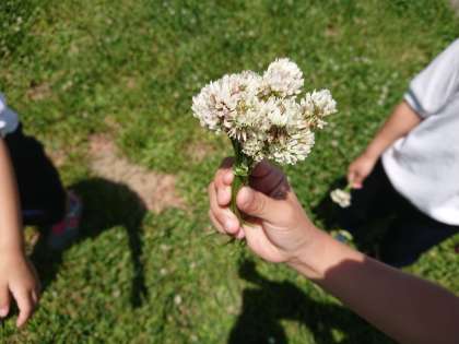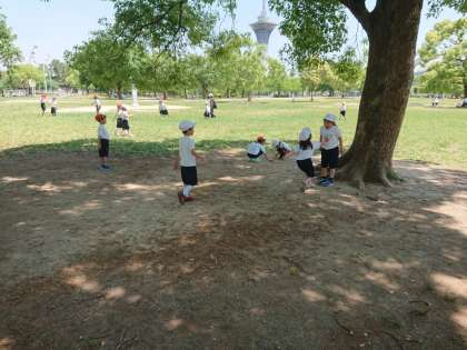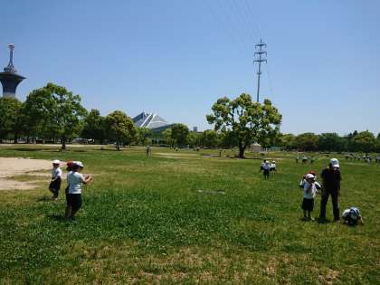 自由時間はだるまさんがころんだをしたり、花摘をしたり、仲よく遊びました。