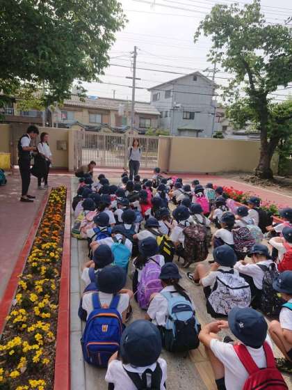 8:50 3年生が「あべのハルカス」に向けて出発しました。