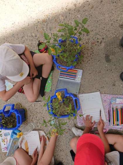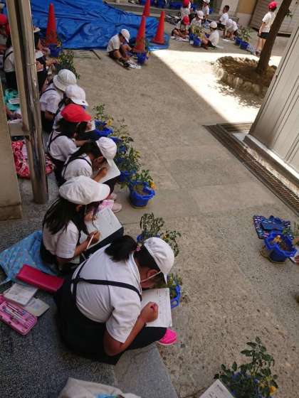 2年生の生活の授業では、育てているプチトマトを観察しました。