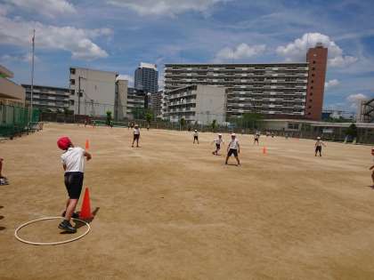 3年生の体育では、「手投げベースボール」を行いました。