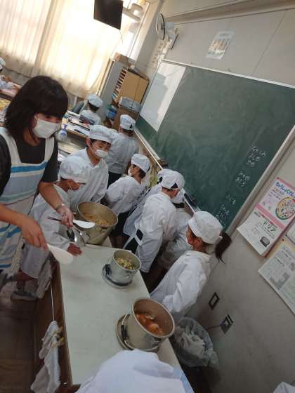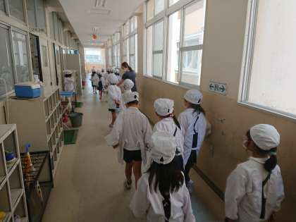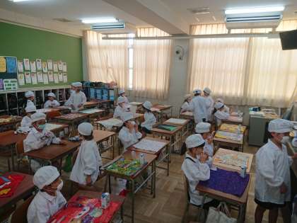 2年生が給食の準備をしています。