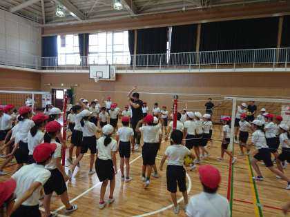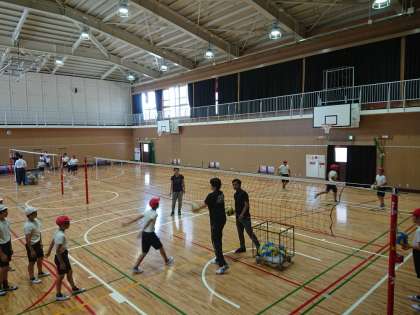 リレーのあと、オーバーハンドパス、アンダーハンドパスを教えていただき、最後に一人ずつアタックを打ちました。