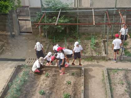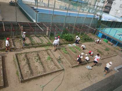 環境委員会では、学習園の草抜きをしました。
