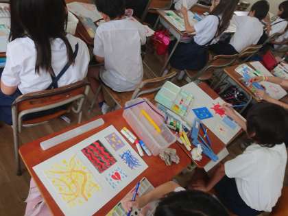 5年生の図工では、気持ちを「色」と「模様」で表現しました。
