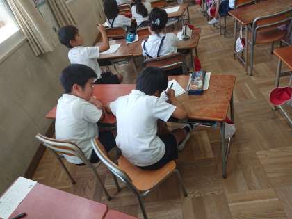 「けんかをなくして、みんなが楽しくする方法」をみんなで話し合い、解決する方法を考えました。