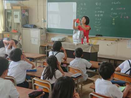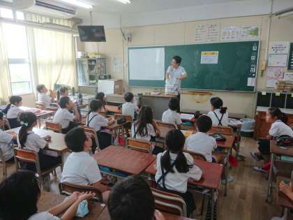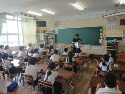 2年生に引き続き、4年生が「非常持ち出し袋」について学習しました。