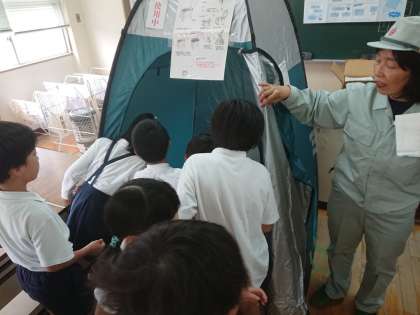 発電機や簡易トイレの説明を地域の方から聞きました。
