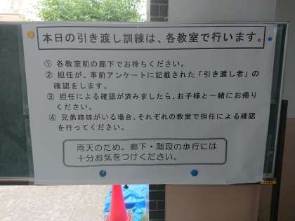 今回は、天候の関係で急遽、各教室で直接の引き渡しとなりました。