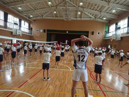 さあ、選手のみんなと準備体操スタート!