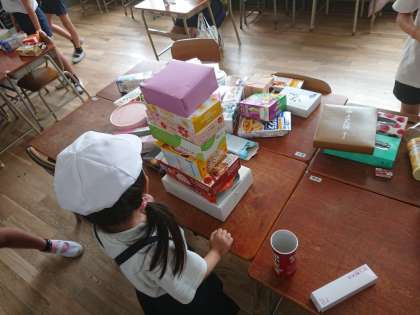 「箱積み」では、いろいろな箱を高く積んでいきます。