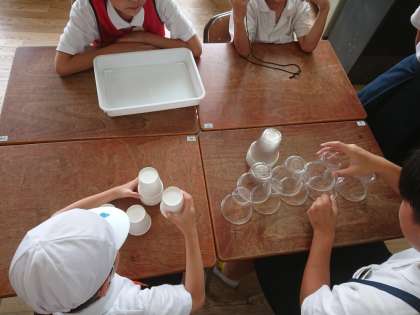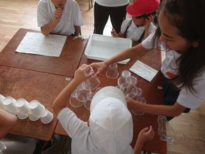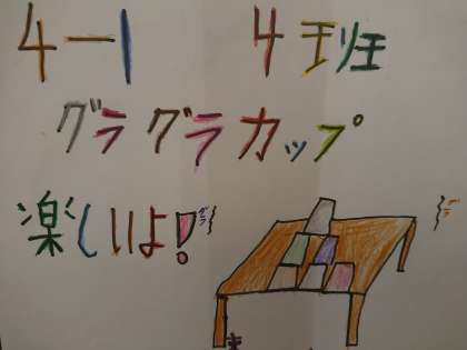 「グラグラカップ」では、制限時間までにカップをいくつ積めるかを競いました。
