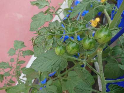 子どもたちの元気をもらって、プチトマトの実もこんなに大きくなりました!