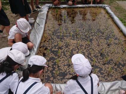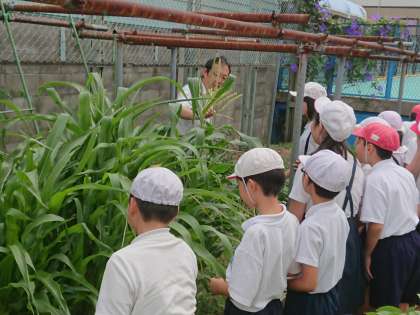 5年生の理科では、学習園で育てているトウモロコシ、インゲン、イネの観察をしました。