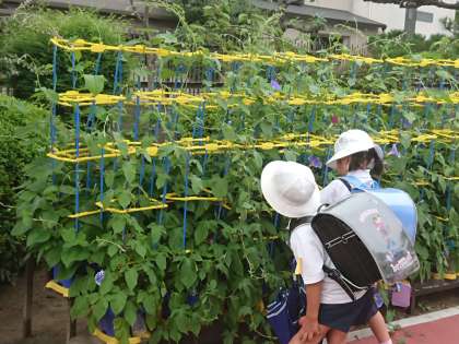 1年生のアサガオも子どもたちの背丈を抜きました!!