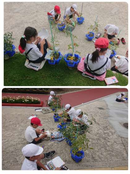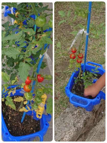 2年生の生活の授業では、プチトマトの収穫を行いました。