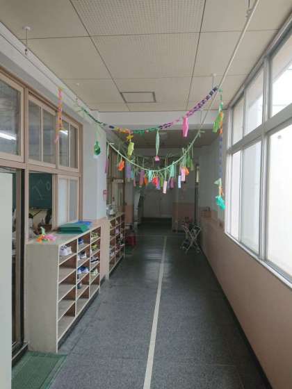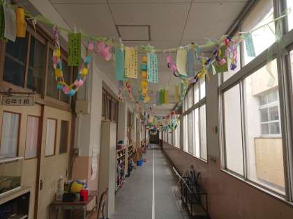 本校の校舎では、七夕の飾りを設置しています。